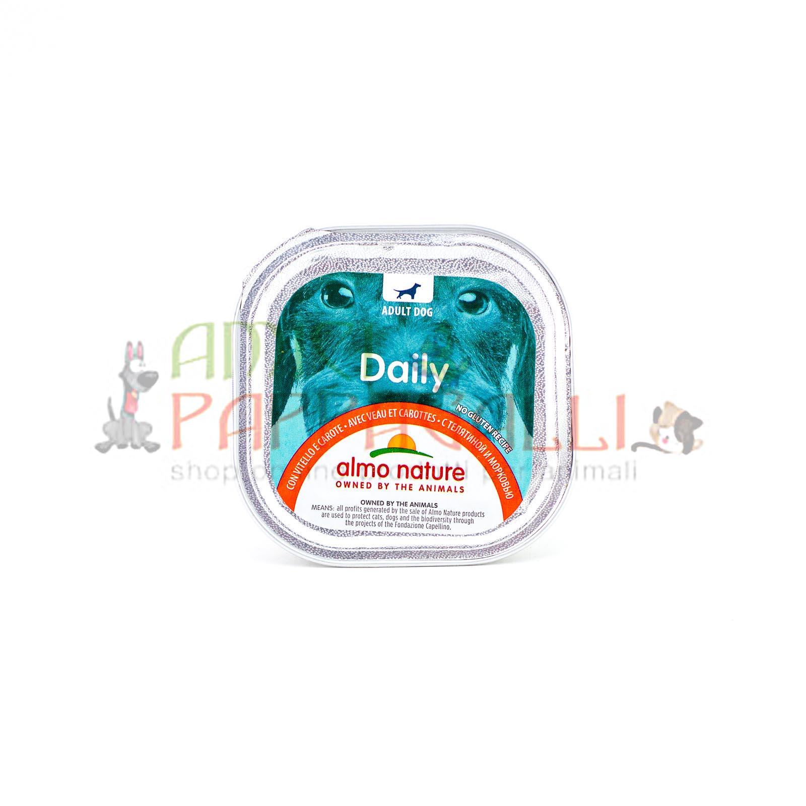 Almo Nature daily con Vitello e Carote, alimento umido per cani adulti, adult dog.