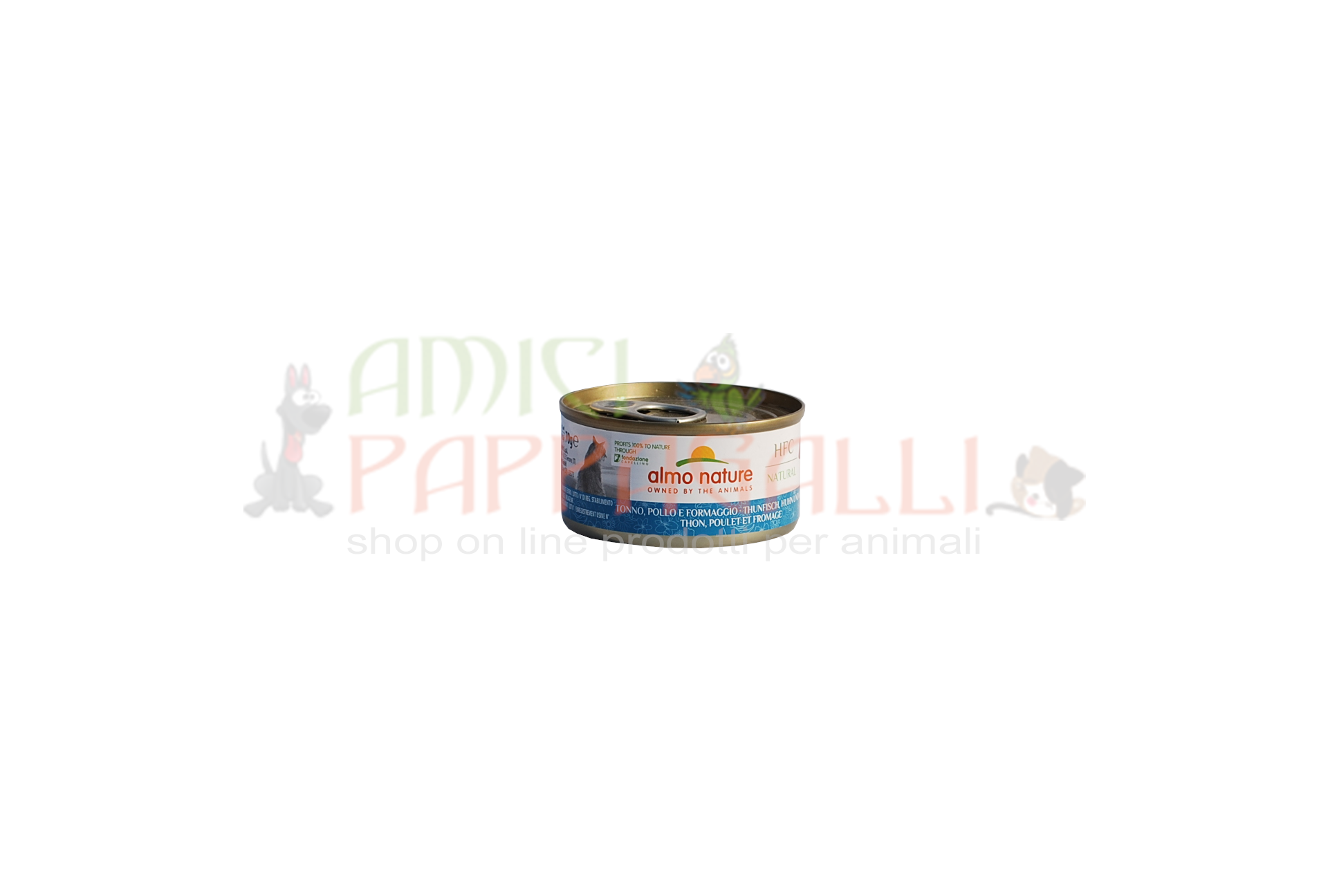 Almo Nature Cuisine HFC con tonno pollo e formaggio per offrire al gatto un prodotto di alta qualità.
