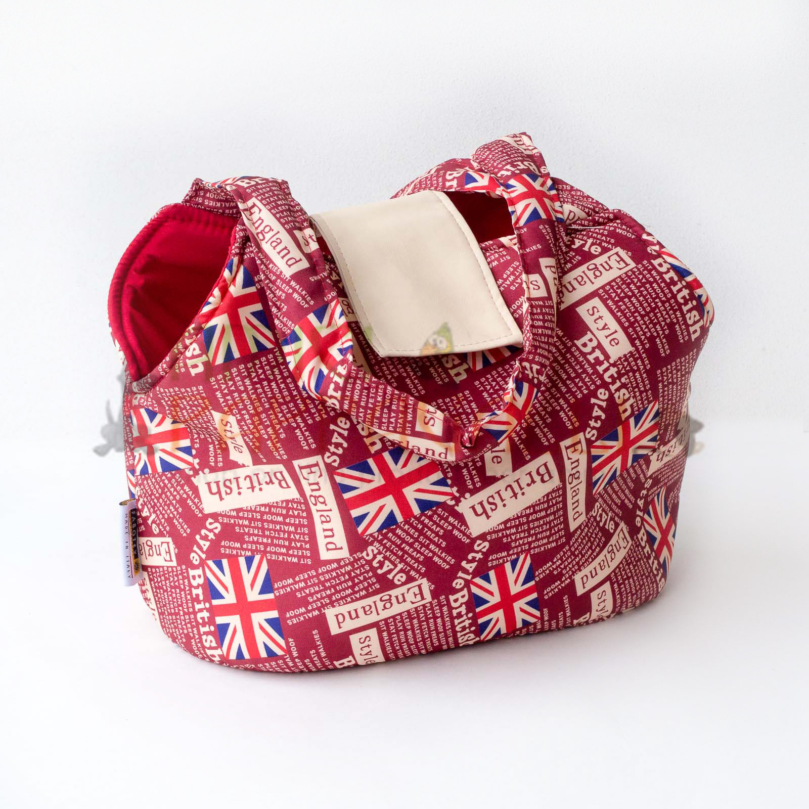 Borsa Trasportino British Red, per cani in tessuto imbottito, stampa fantasia.