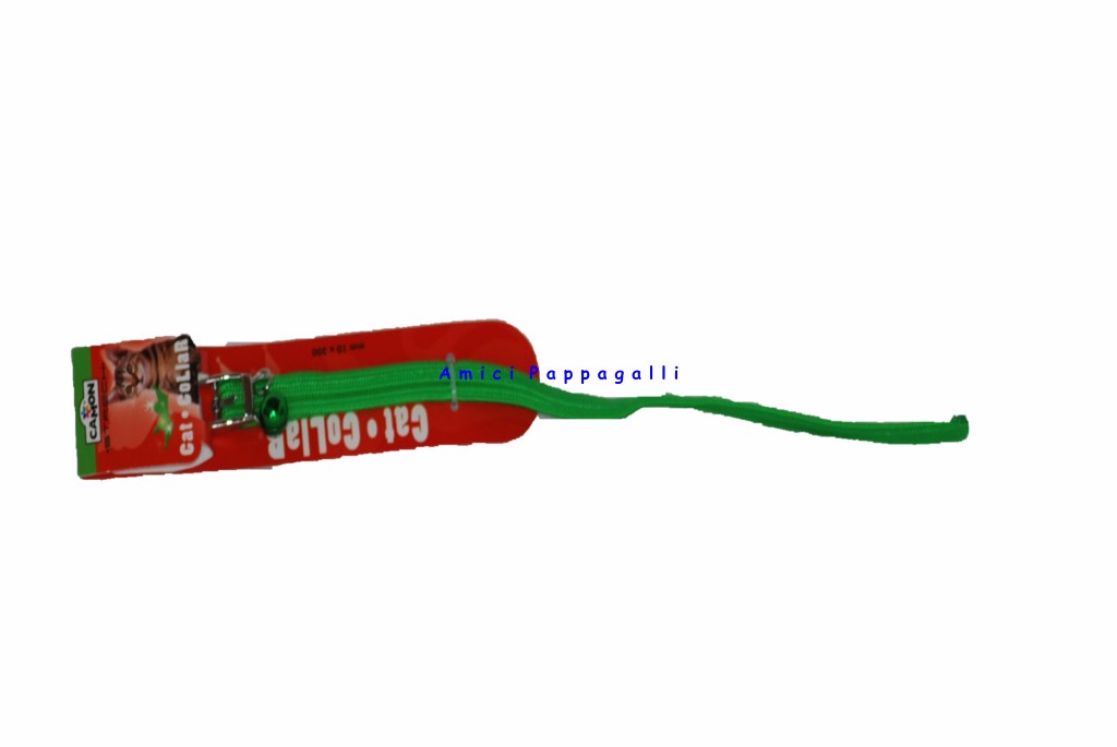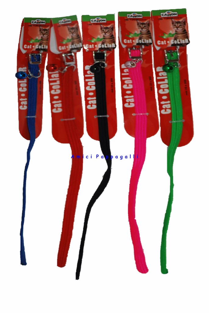 Collare elastico per evitare che il gatto si possa impigliare in qualcosa, con campanello colorato.