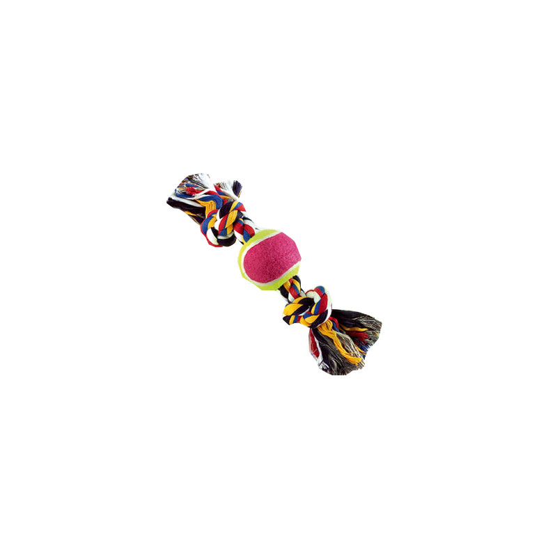 Gioco per cani cotonosso in corda cotone annodata con palle tennis lungo 30 cm peso 200g.