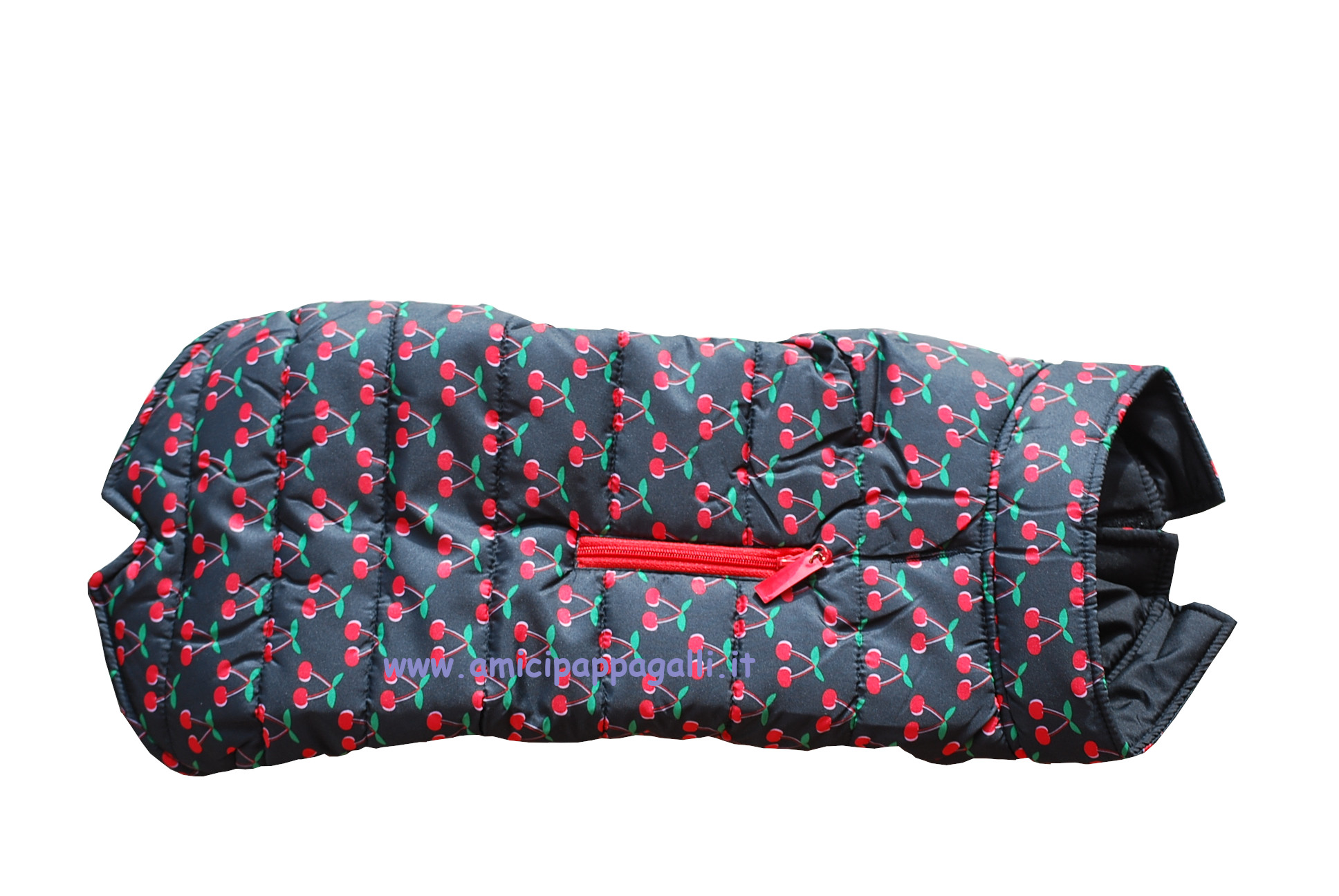 E’ una giacca a vento in fantasia original colorata a ciliegie camon, per le giornate uggiose e con pioggia .