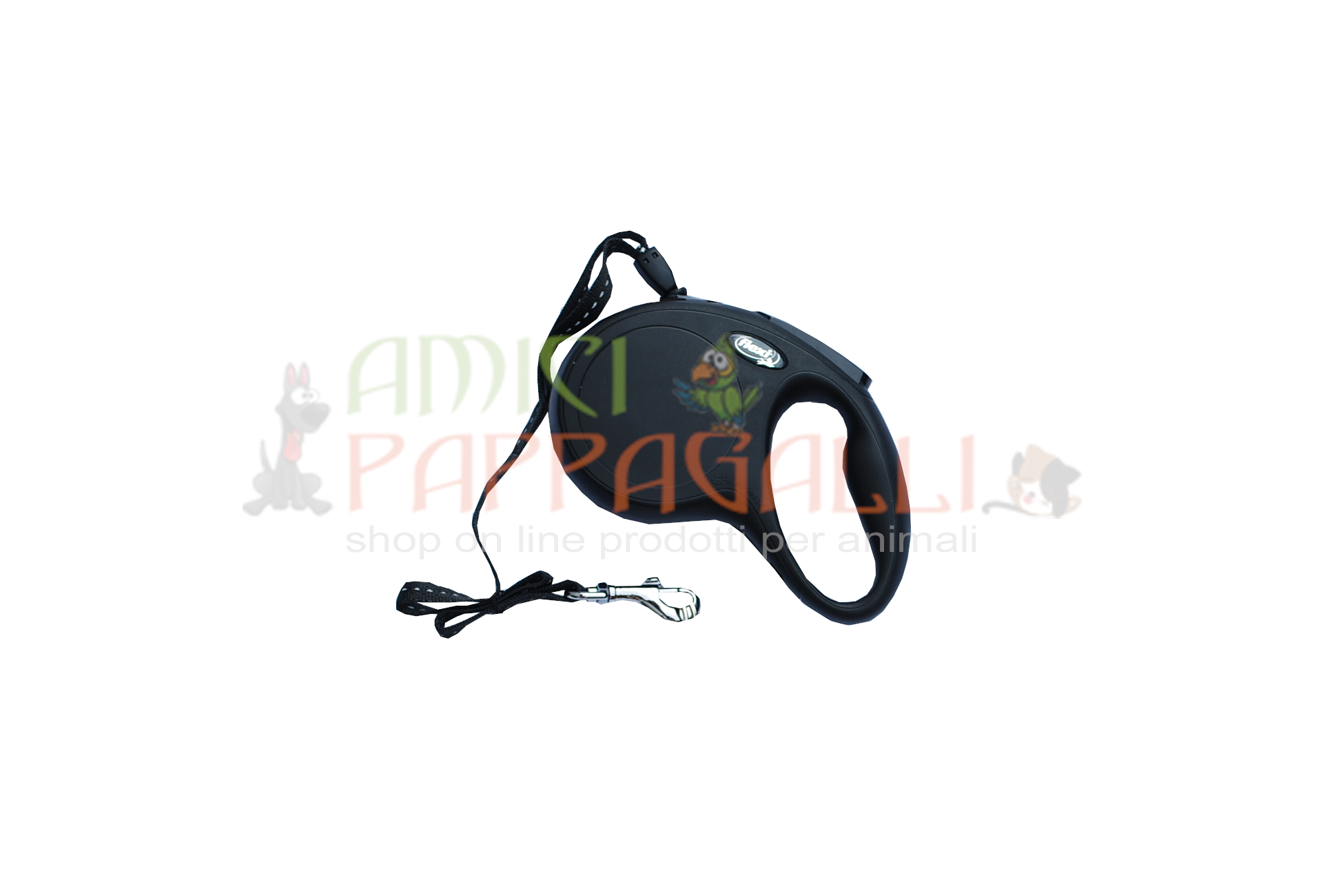 Tutti i guinzagli Flexi hanno l’avvolgimento automatico e sistema frenante con recupero.