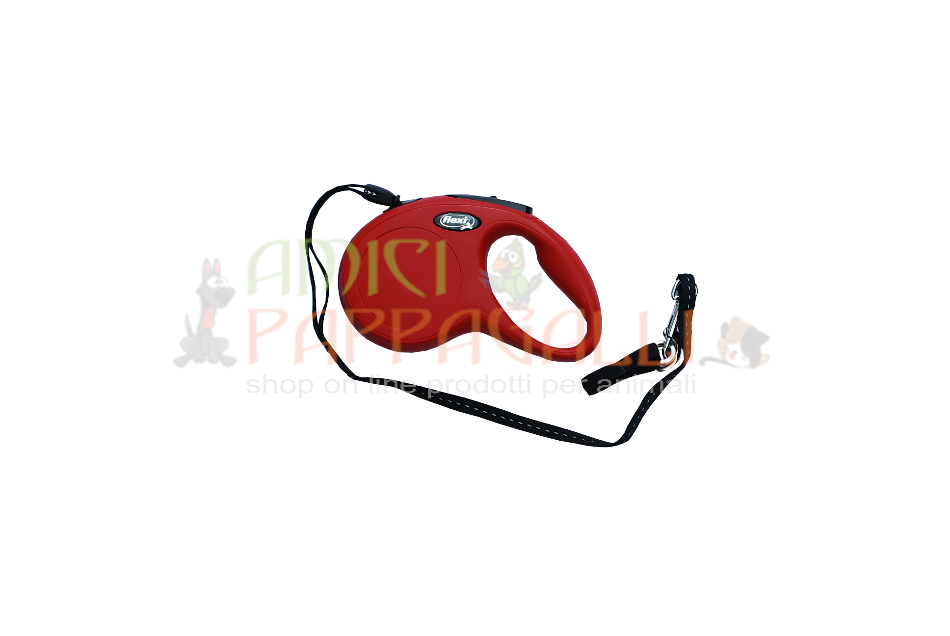 Tutti i guinzagli Flexi hanno l’avvolgimento automatico e sistema frenante con recupero.