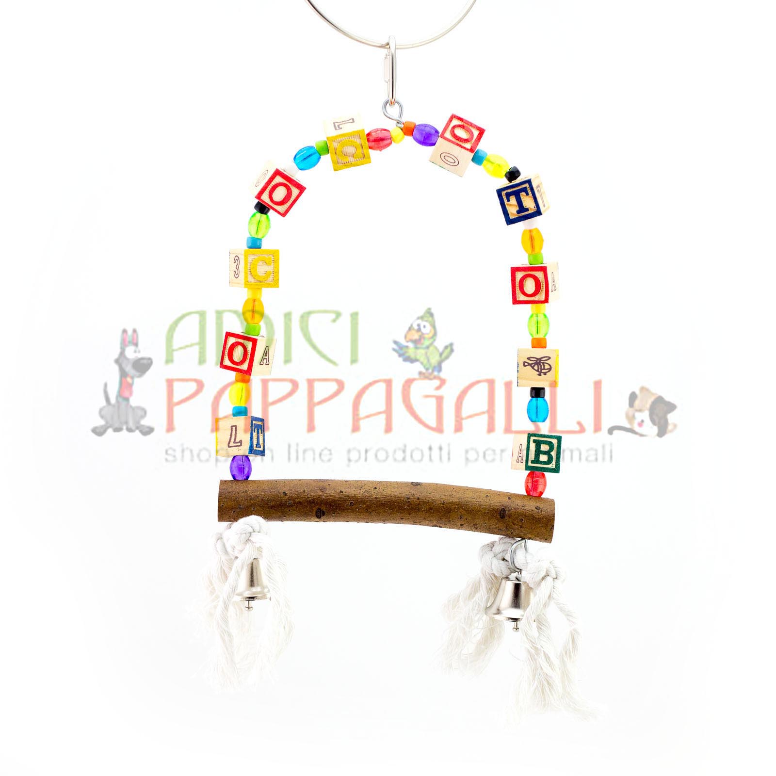 Gioco altalena con posatoio in legno per pappagalli e per tutti gli uccelli