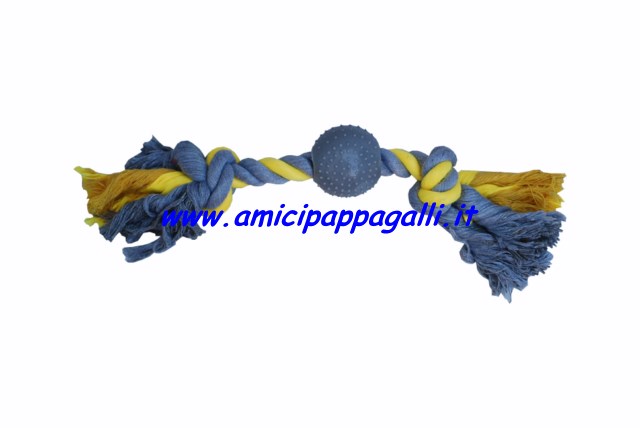 Gioco corda naturale per cani con 2 nodi, e palla in gomma.