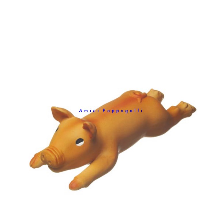 Gioco per cane con effetto sonoro: un maialino sdraiato in lattice, la sua forma lo rende facile da prendere dal vostro cane. Se schiacciato, questo simpatico maialino emette un suono tipo squeack.