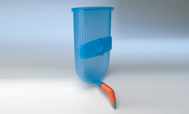 Beverino a sifone realizzato in plastica atossica resistente, con sistema antigoccia con bottoncino che i coniglietti andranno a premere per bere.