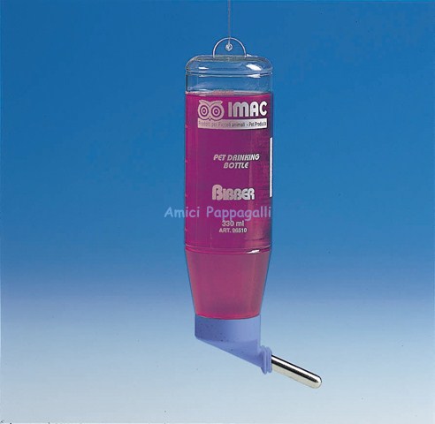 Bibber per criceti, conigli, conigli nani, furetti, cincillà, cavie: beverino a sifone, si fissa con il gancio alla gabbia, realizzato in plastica atossica resistente, con la pallina d’acciaio che il criceto o i roditori andranno a premere per bere.