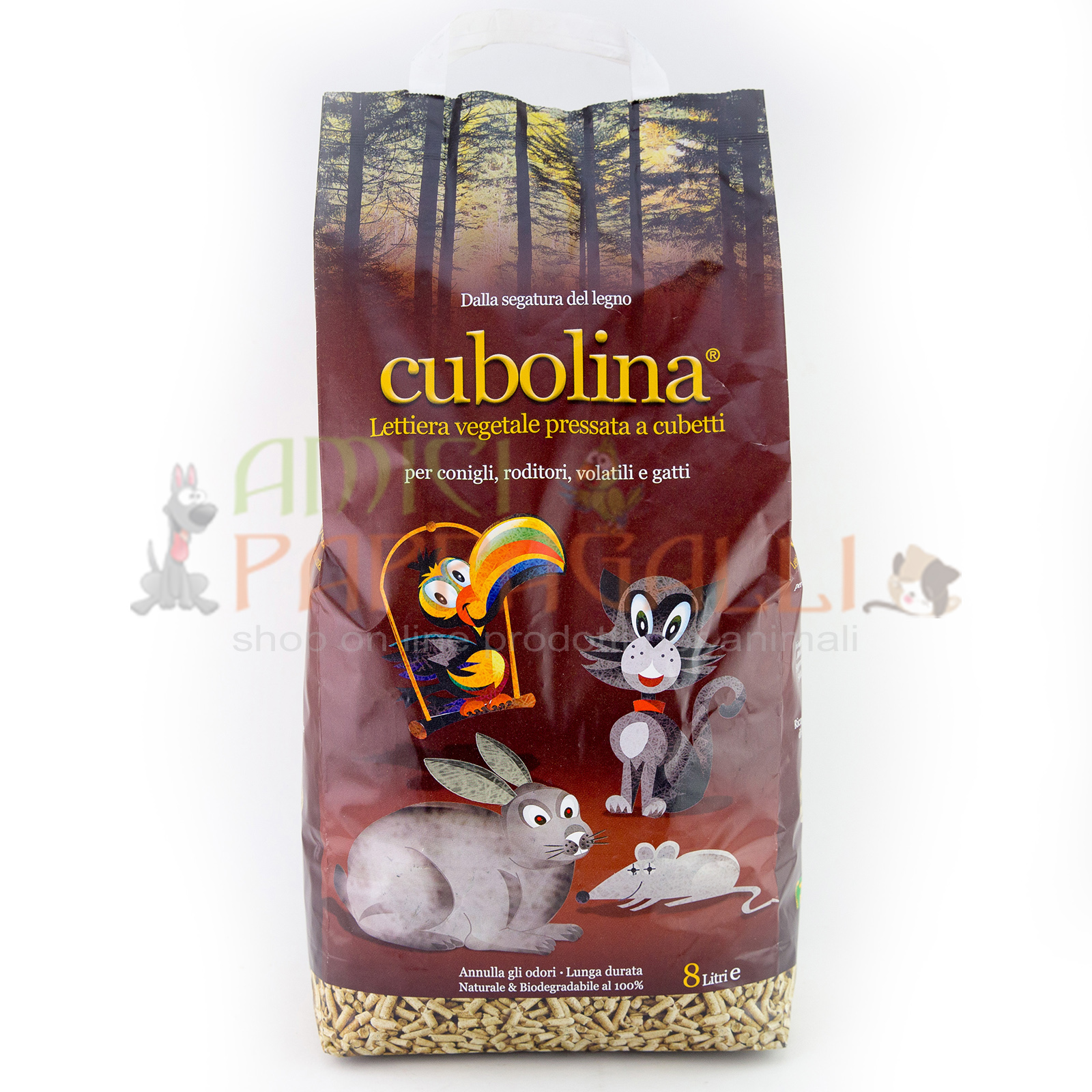 Una lettiera naturale fatta in pellets di legno, la cubolina è al 100% naturale , e ha una elevata assorbenza, eliminando gli odori.