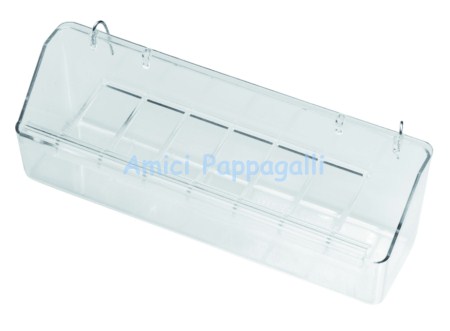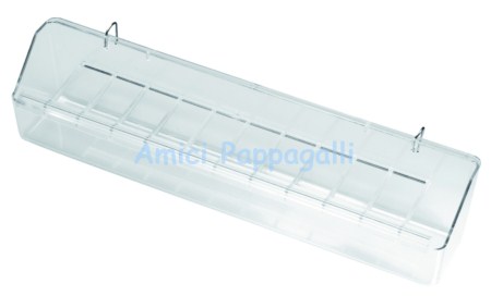 Mangiatoia interna media con ganci metallici e griglia antispreco, per le gabbie e le voliere dei volatili.