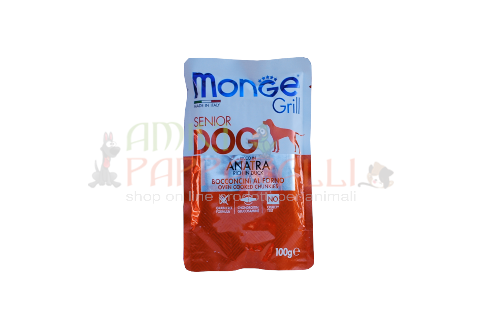 Monge Grill Senior Dog ricco in Anatra 100g – buste di bocconcini umido per cane anziano