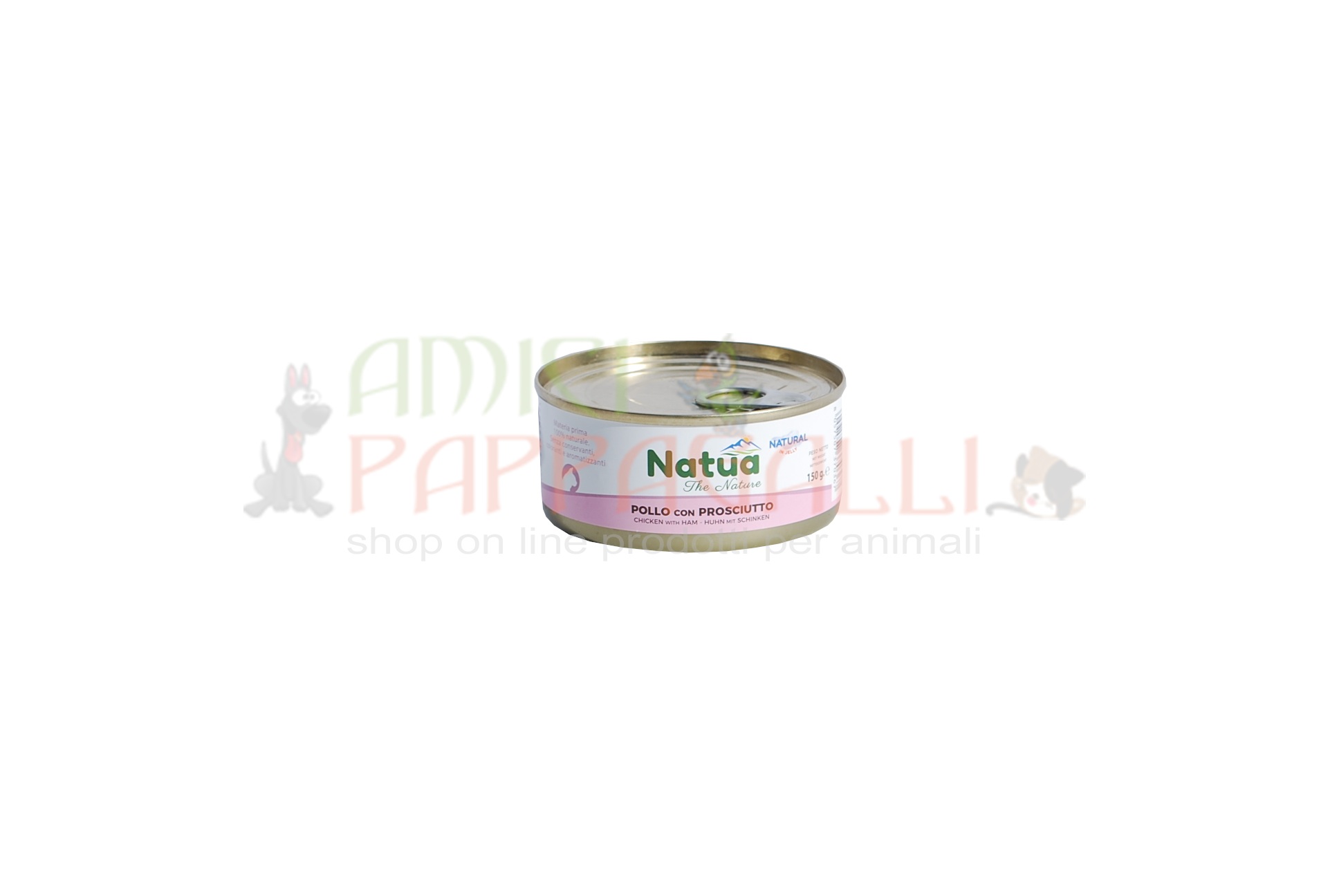 Natua è un prodotto alimentare umido per gatto, viene cotto a vapore in una morbida gelatina.