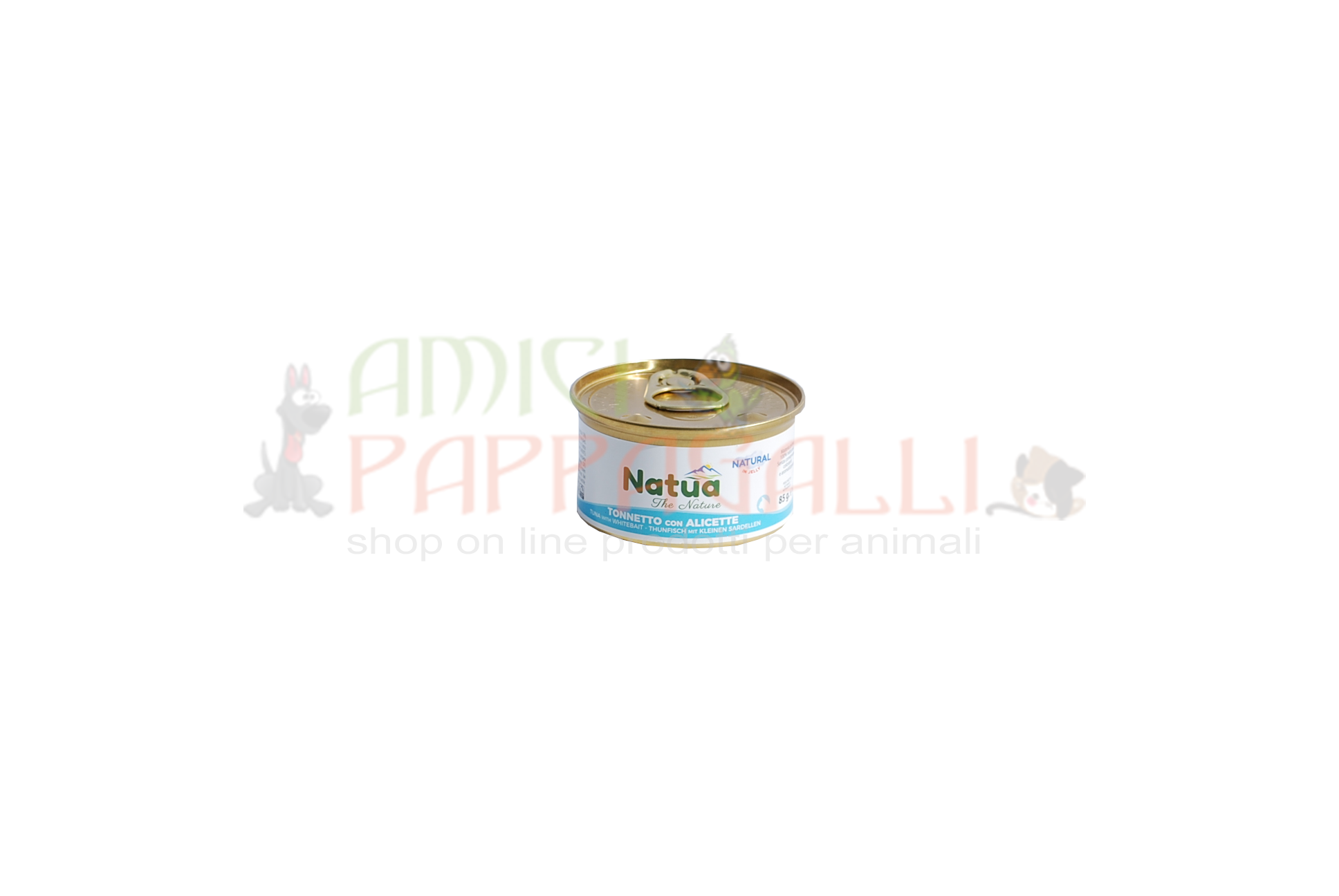 Composizione Natua Tonnetto con Alicette: Tonnetto 51%, Alicette 4%, Riso 1,5%.