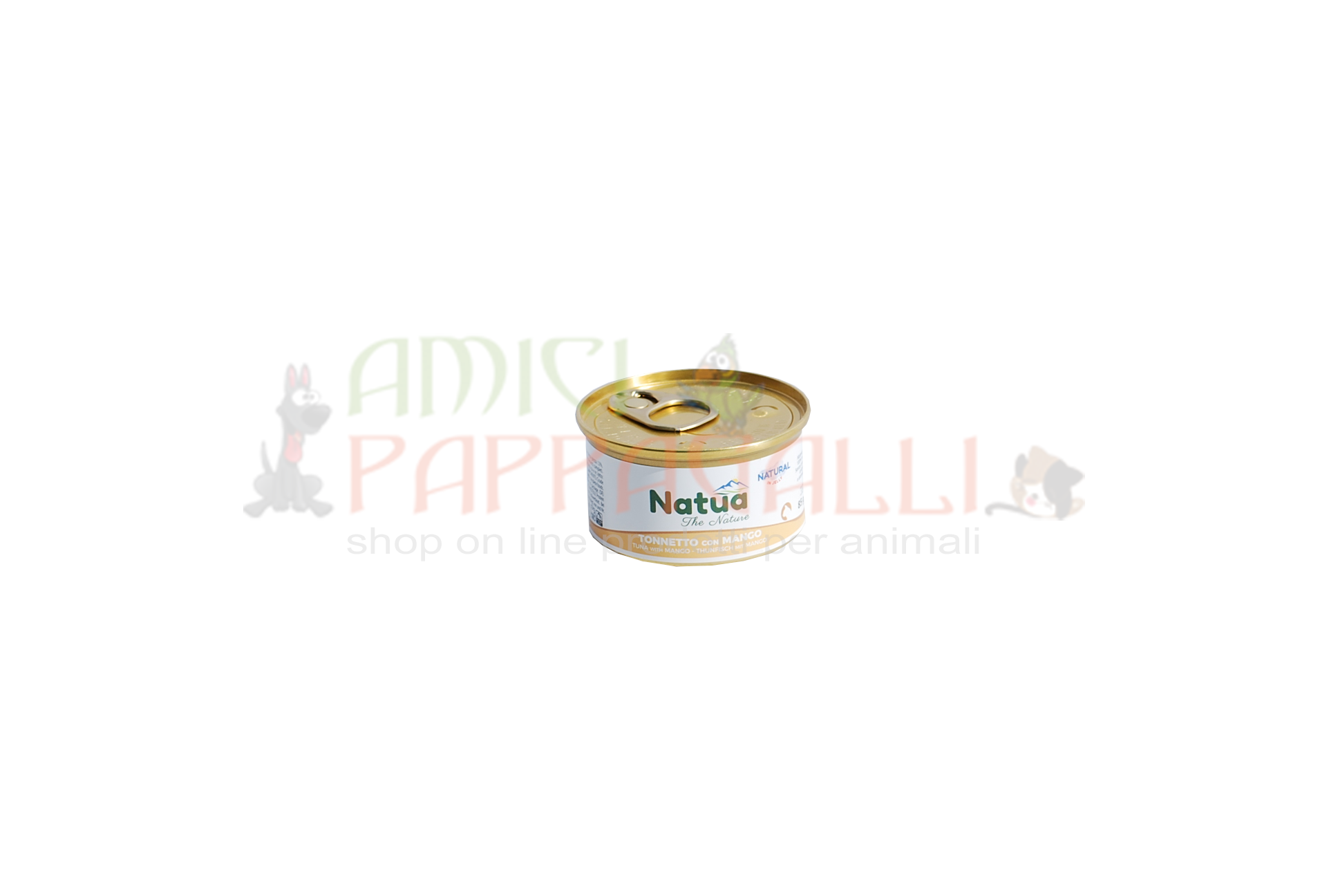 Composizione Natua tonnetto con mango: Tonnetto 52%, Mango 4%, Riso 1,5%.