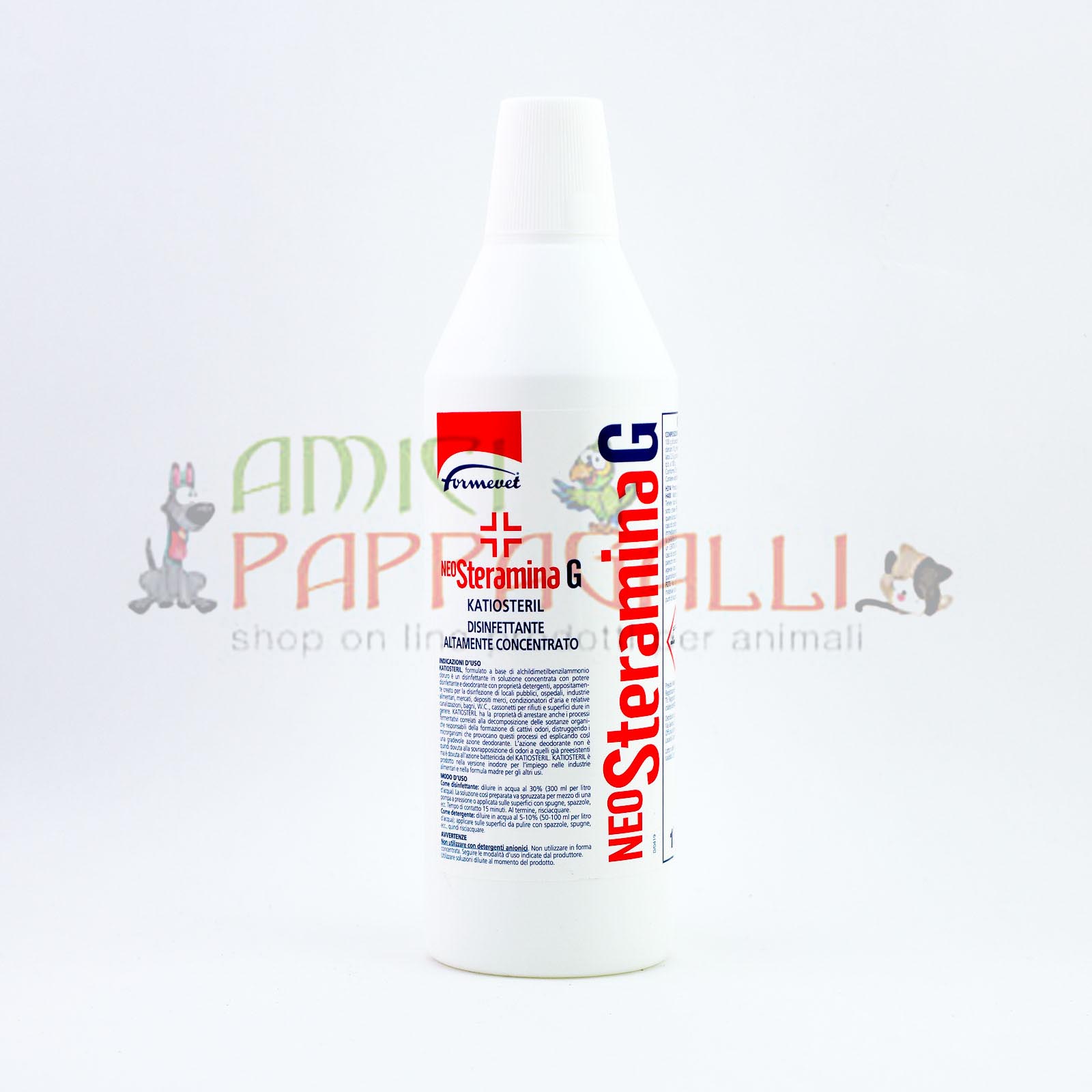 NeoSteraminaG Katiosteril è un disinfettante per ambienti ove soggiornano animali.