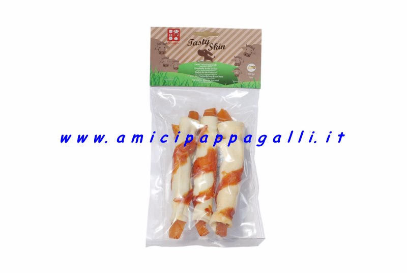 Osso Twist Naturale pelle di bufala con pollo e patate tasty skin 3 pezzi 12,5cm 100g Gtt004 è un alimento complementare per cane.