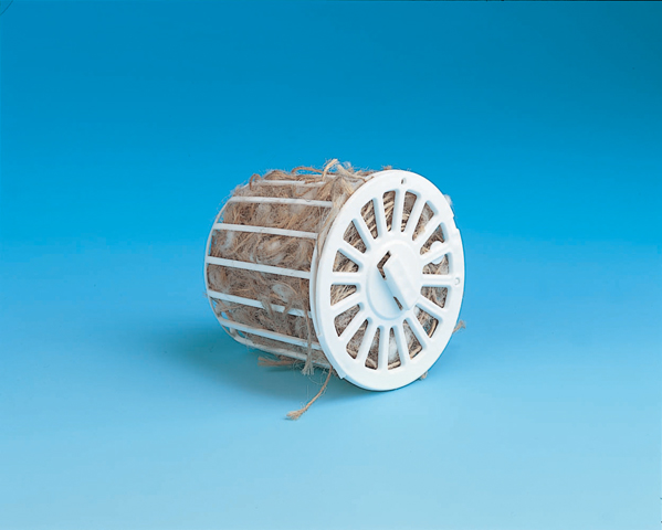E’ un accessorio indispensabile per tutti gli uccelli esotici, canarini, cardellini, indigeni perchè non è igienico mettere la juta per terra, in questa palla nido viene racchiusa la juta sufficiente perchè gli uccelli possano prenderla e portarla nel nido per nidificare.