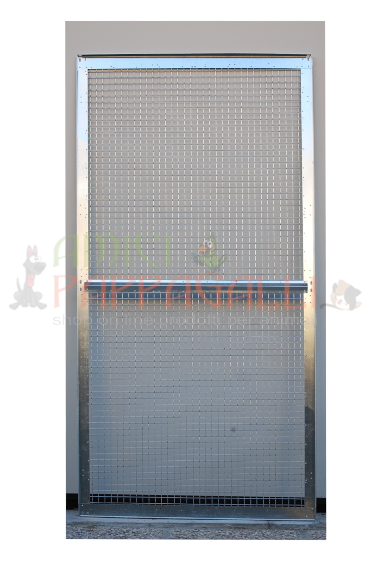 Il pannello in rete zincato, è compatibile con tutti gli altri componenti delle voliere modulari.
