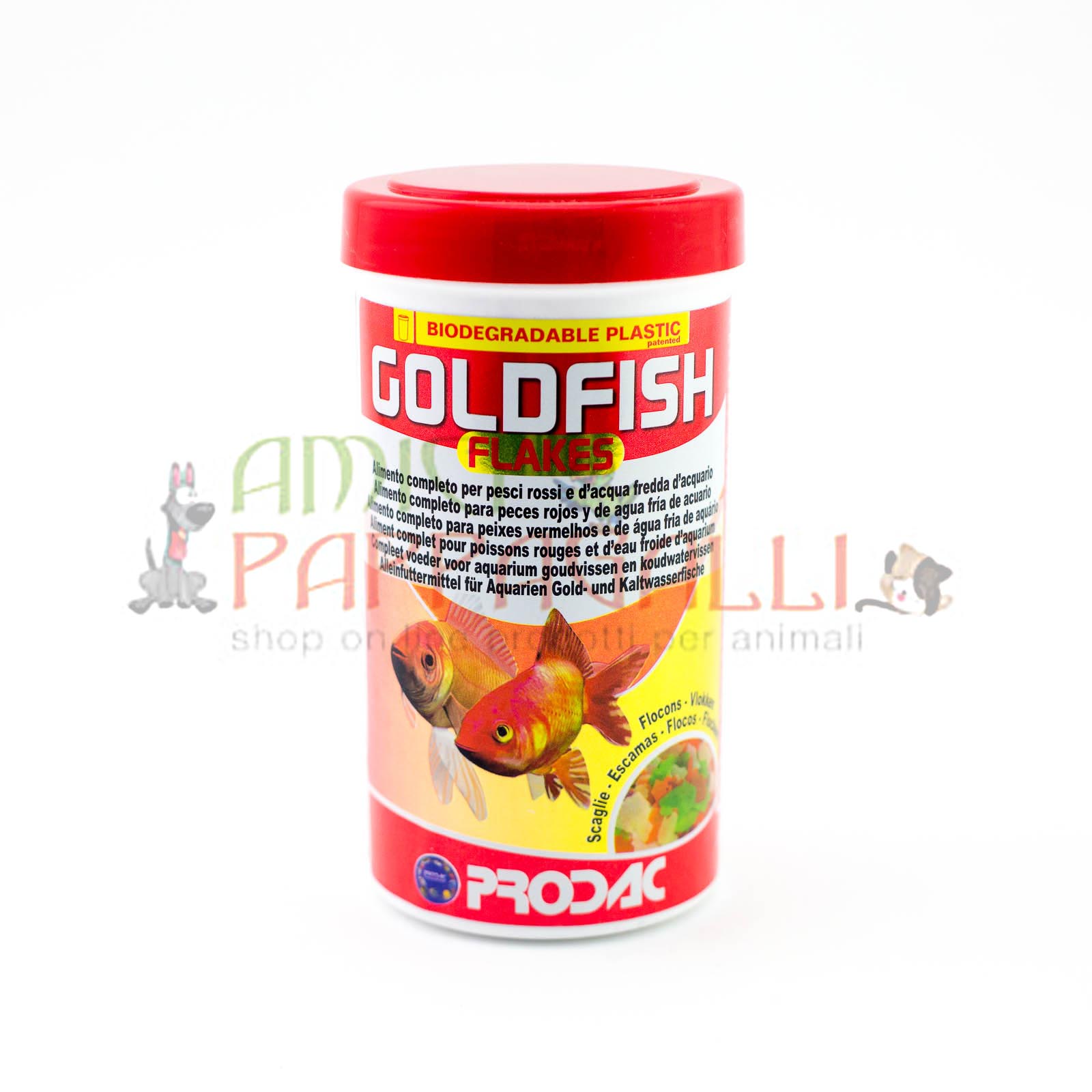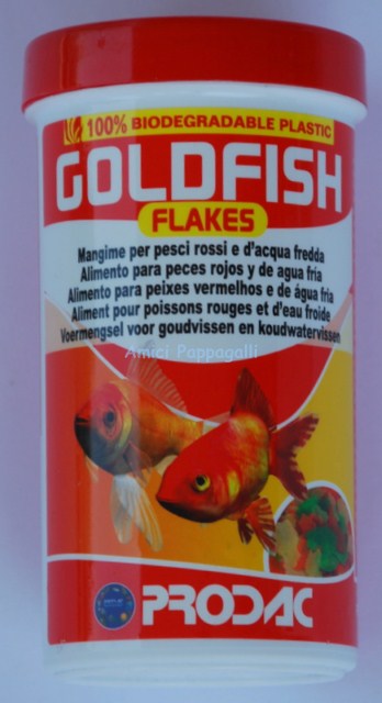Prodac goldfish flakes mangime per pesci rossi e pesci d’acqua fredda.