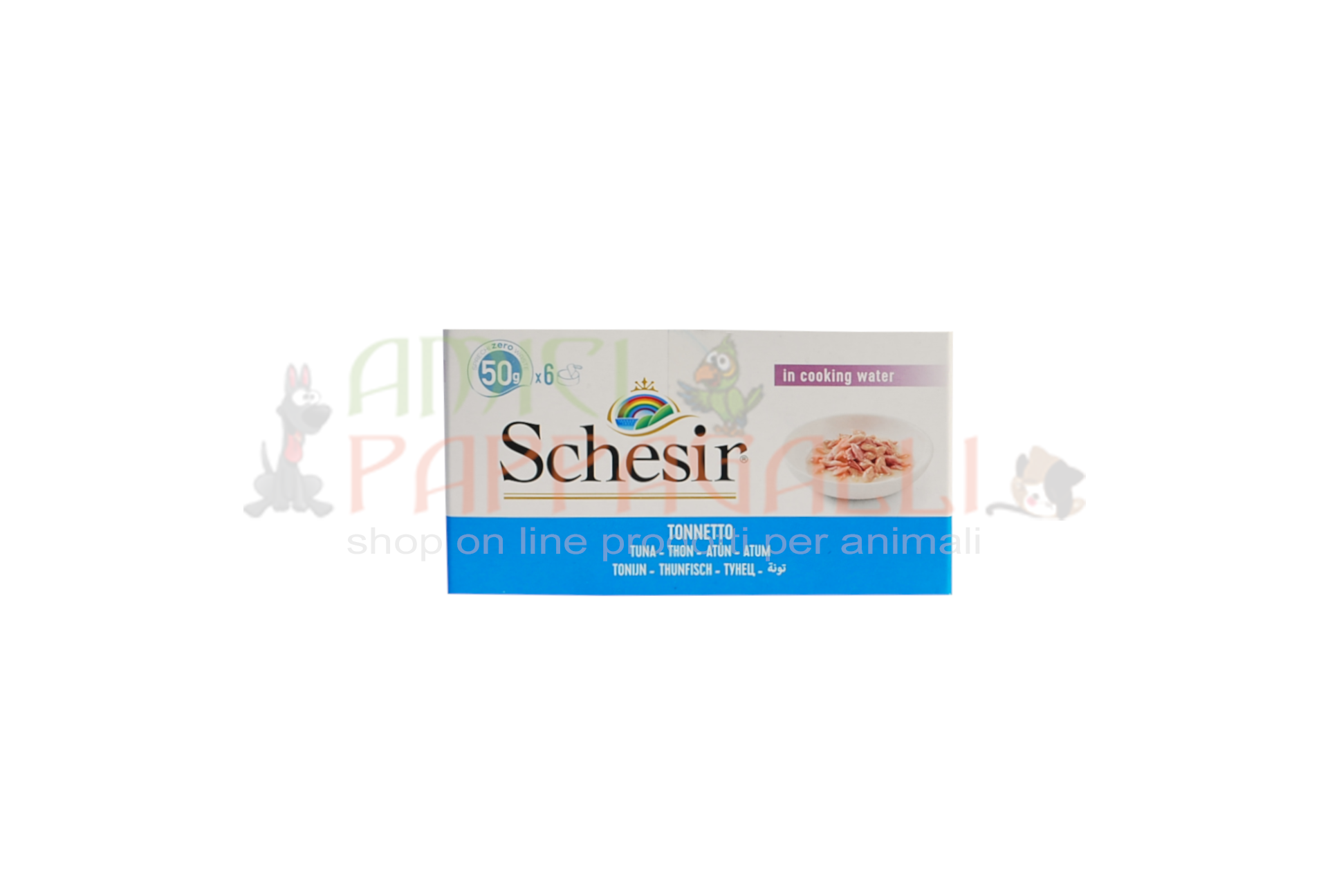 Cibo umido multipack 6x50g schesir cat tonnetto.
