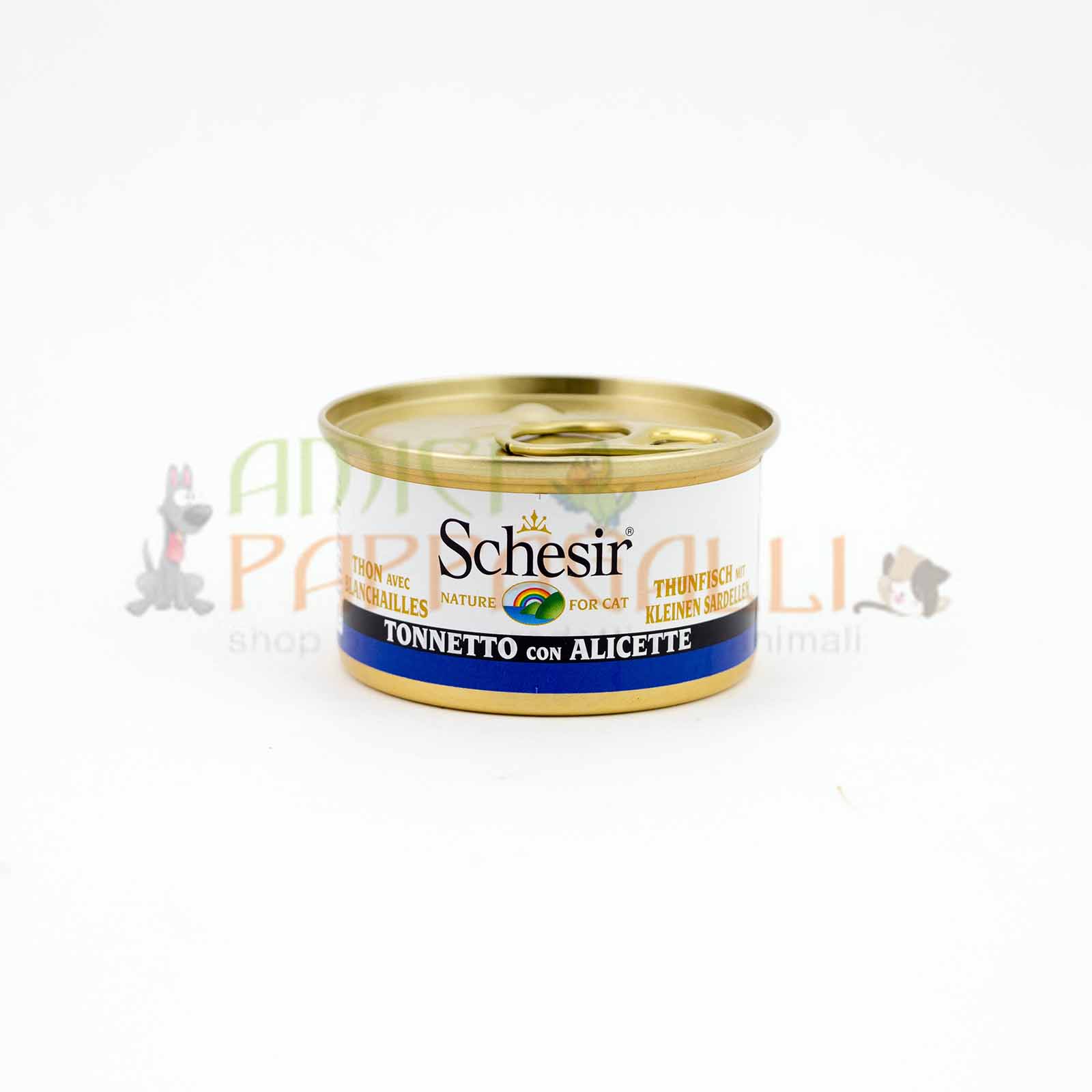 SCHesir cat tonnetto con alicette alimenti umido per gatti lattina 85 gr.