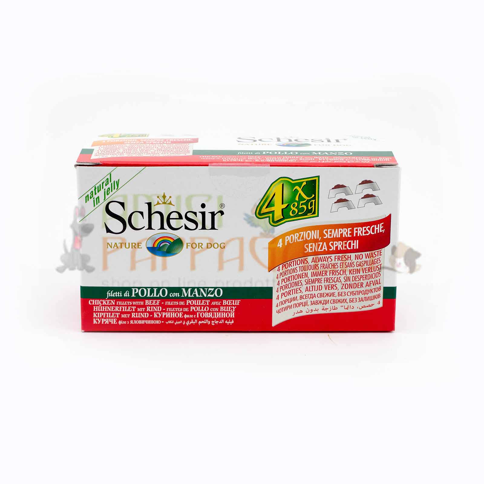 Schesir dog filetti di Pollo con Manzo 4 x 85 gr cibo umido cane in Porzioni multipack.