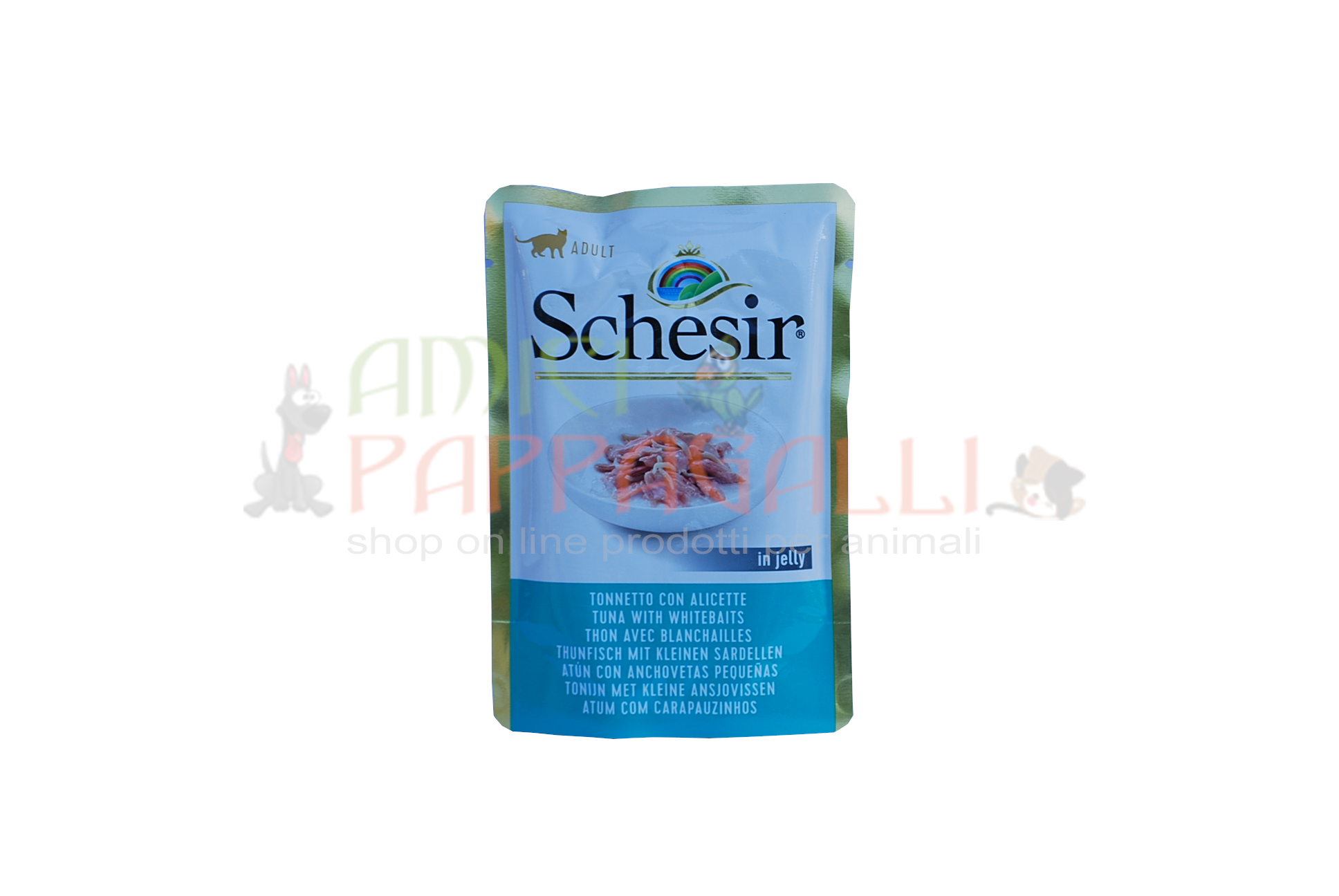 Cibo umido gatti adulti, Schesir cat tonnetto con alicette busta.