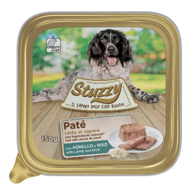 Scopri il Paté con Agnello e Riso di Stuzzy: un alimento completo per cani, che trasforma ogni pasto in un momento di genuinità, benessere e squisitezza.