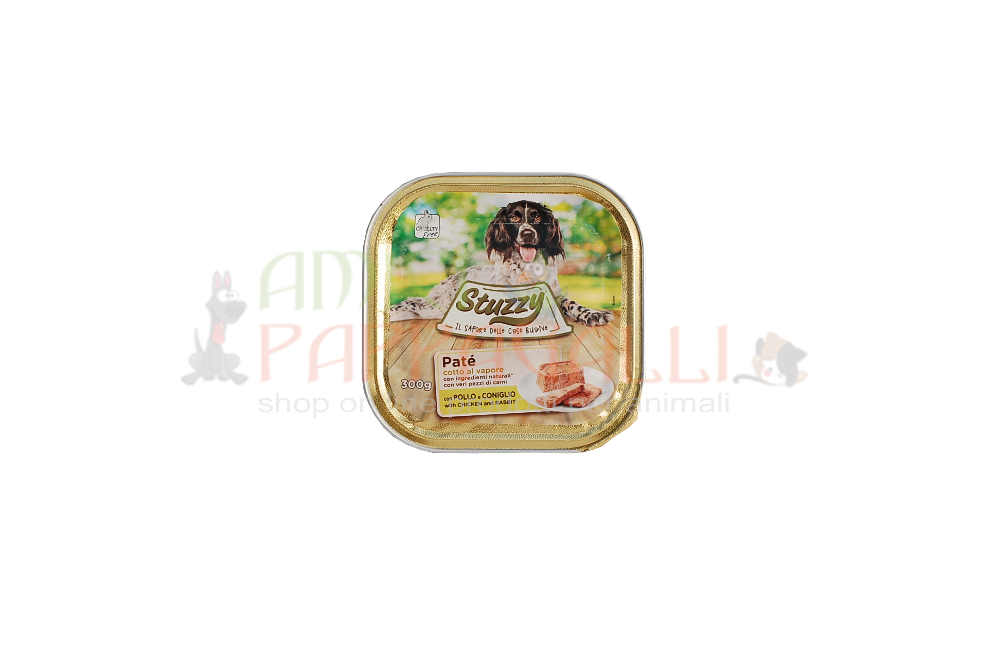 Vaschetta paté stuzzy dog pollo e coniglio da 300g.