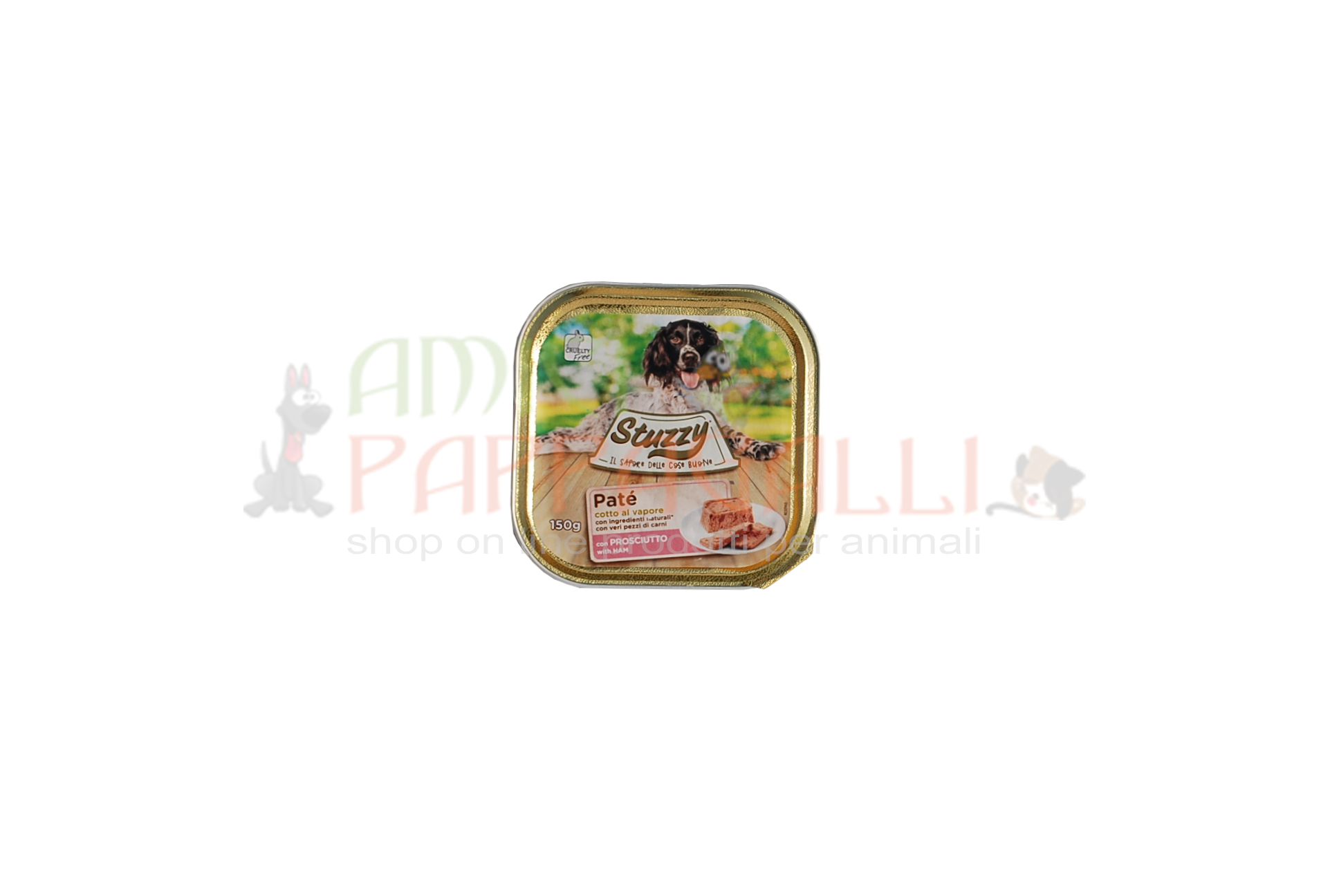 Scopri il Paté con Prosciuto di Stuzzy: un alimento completo per cani adulti di tutte le razze, che trasforma ogni pasto in un momento di genuinità, benessere e squisitezza.
