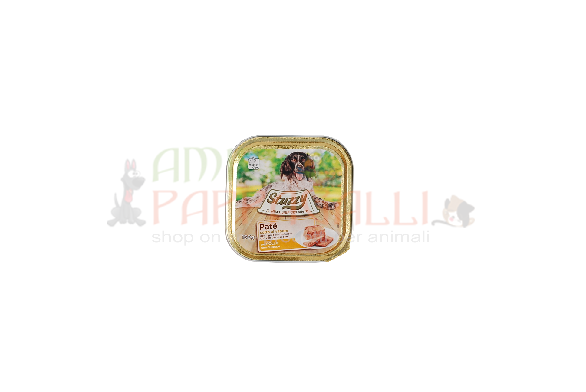 Scopri il Paté con Pollo di Stuzzy: un alimento completo per cani adulti di tutte le razze, che trasforma ogni pasto in un momento di genuinità, benessere e squisitezza.